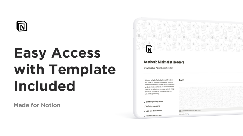 Our Notion headers feature infinite repeating patterns, purposefully designed to keep distractions at bay. Say goodbye to clutter and hello to laser-focused work.